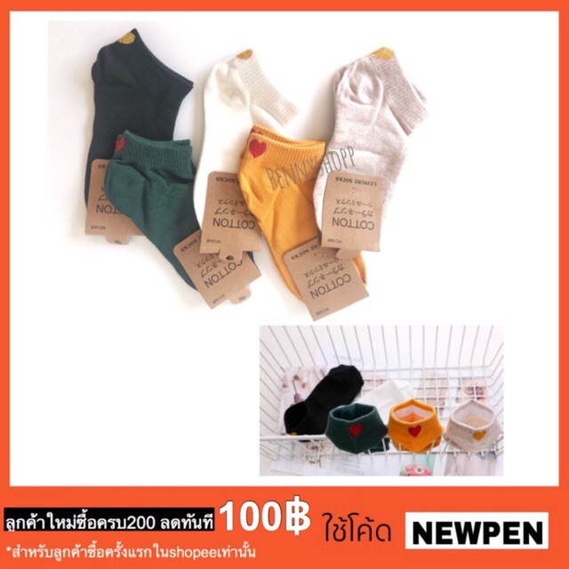★★★★★ ??ถุงเท้าข้อสั้นลายหัวใจด้านหลัง ✓ส่งฟรี✓เก็บเงินปลายทาง✓ของแท้✓ประกันเต็ม✓