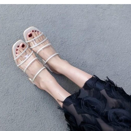 - ซื้อ รองเท้าสายคาดใส little S ส้นนิ่ม มี2สี พร้อมส่ง