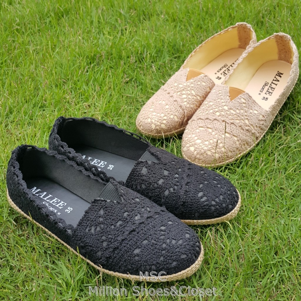 - - ราคาล่าสุด คัทชู ลูกไม้ถัก ทรงTom's ซับในนิ่ม [K33]